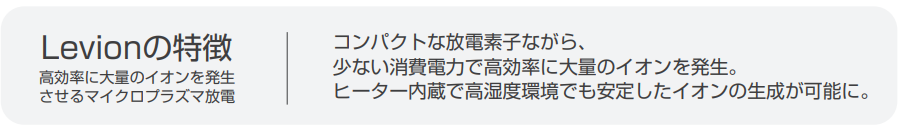 酸素クラスターイオンとは、酸素分子イオンが10~60個集まった集合体で、空気に太陽光線が当たることによって自然界に多く作られています。Levionは放電ブレードにてマイクロプラズマ放電を起こし、空気中の酸素分子を電離させることで、わずかな電力から大量の酸素クラスターイオンを人工的に作り出します。