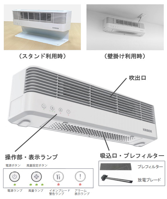 高層タワーマンションの各階ゴミ置き場やエレベーターなど、小規模スペースの臭気対策に最適な機種。小型ながらも本体にファンを搭載し、しっかりとしたイオン発生量を誇ります。付属のステーで、天井・壁面など任意の場所に設置が可能です。